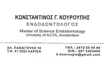 Δ: Αλ. Παναγούλη 18, τ.κ 41222, Λάρισα T: 2410554444 | 6973403408 E: k.kouroupis@gmail.com