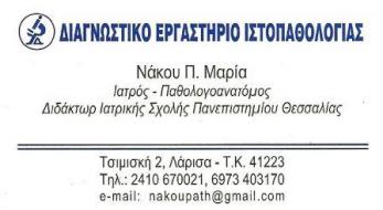 Δ: Τσιμισκή 2, τ.κ 41223, Λάρισα T: 2410670021 | 6973403170 E: nakoupath@gmail.com
