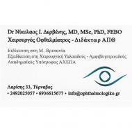 Ο Χειρουργός Οφθαλμίατρος, Dr Νικόλαος Ι. Δερβένης δραστηριοποιείται επαγγελματικά στη Θεσσαλονίκη και στη Λάρισα. Πέτυχε με Πανελλήνιες Εξετάσεις στην Ιατρική Σχολή του Αριστοτέλειου Πανεπιστημίου Θεσσαλονίκης από όπου και αποφοίτησε. Κατόπιν, ειδικεύτηκε στην Οφθαλμολογία στην Ελλάδα και στη Μεγάλη Βρετανία, και μετά τη λήψη του τίτλου της ειδικότητας μετεκπαιδεύτηκε επί σειρά ετών στη Μ. Βρετανία όπου κατείχε μεταξύ άλλων και τον τίτλο του Αναπληρωτή Διευθυντή του Εθνικού Συστήματος Υγείας (NHS) της Μ. Βρετανίας.