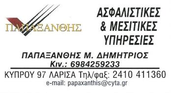 Δ: Κύπρου 97, τ.κ 41222, Λάρισα T: 2410411360 | 6984259233 E: papaxanthis@cyta.gr