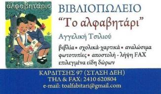 Υπ/νος: Αγγελική Τσιλιού Δ: Καρδίτσης 97 (Στάση ΔΕΗ), τ.κ 41335, Λάρισα T: 2410620804 | F: 2410620804 E: toalfabitari@gmail.com